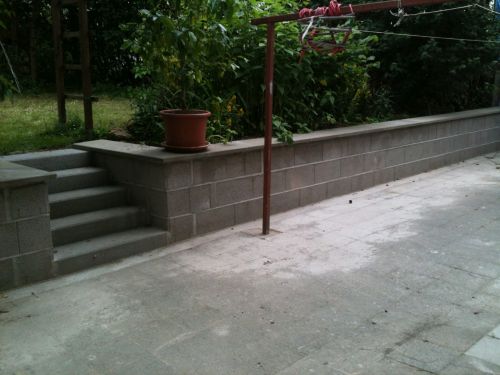 Leistungen: Errichtung einer Gartenmauer aus Bossamur-Steinen -